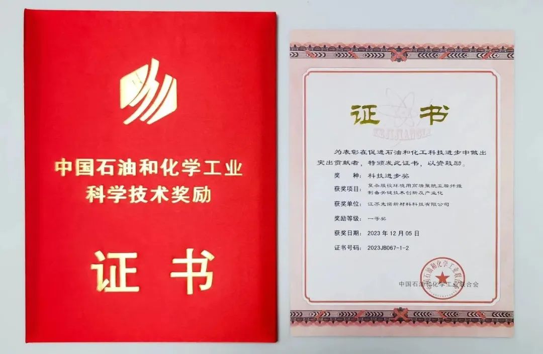 12月5日,2023年全國石油和化工科技創新大會在武漢召開。江蘇先諾新材料科技有限公司“復雜服役環境用高端聚酰亞胺纖維制備關鍵技術創新及產業化”項目榮獲中國石油和化學工業聯合會科技進步一等獎。