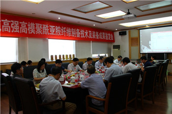 該鑒定會由中國石油和化學工業聯合會主持召開,北京大學周其鳳院士和中航工業北京航空材料研究院陳祥寶院士分別擔任本次鑒定會主任和副主任委員,由中國化纖工業協會、中石化北京化工研究院、中國化工學會、后勤保障部軍需裝備研究所、中國科學院化學所等專家組成了鑒定委員會。出席會議的還有中國石油和化學工業聯合會胡遷林秘書長、北京化工大學王峰副校長、材料學院楊萬泰教授、張立群教授等。王峰副校長和楊萬泰院長分別代表學校和學院分別介紹了武德珍教授團隊在聚酰亞胺纖維方面的研發情況和工作經歷。與會專家聽取了團隊的工作、技術、檢測、查新等報告,審查了有關鑒定材料。